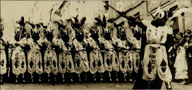 La filà Berberiscos va elegir per traure al carrer un disseny de Luis Solbes en la gelada vesprada del 22 d'abril. I es que, els populars bequeteros tenien una missió molt important en 1990 i era la d'estar al centre de la desfilada mora i per tant, traure esquadra d'enmig. Els esquadrers portaven un maquillatge negre com els núvols, que van descarregar la seua fúria quan l'esquadra d'enmig enfilava la Plaça Espanya. Per això l'última part de l'Entrada Mora va viure les conseqüències de la molesta pluja, tan inoportuna com sempre. I més en eixos anys en els que l'Entrada Mora sempre anava acompanyada d'aigua. Però no era el maquillatge negre el que destacava, el turbant era més acaparador ja que era roig i li sobreixien tres plomes de color tostat que anaven a conjunt amb la resta del trage, de gran bellesa i amb tocs originals com els forats elegants que sorgien als genolls. El calçat devia ser còmode i a conjunt amb el turbant. L'antiga cavalleria de Bequetes no va fer cap referència als cavalls i va preferir traure una esquadra d'enmig bereber amb els tons de l'arena del desert. La marxa mora "Marxa del centenari" d'Amando Blanquer va ser la música ideal per a l'esquadra bequetera, plena de metalls daurats. Una volta més es va fer patent la maestria de Luis Solbes per a conjuntar teles i metalls daurats, no sols a l'esquadra d'enmig 1990 sinó en moltes altres esquadres de negres d'Alcoi que li han donat un estil propi i diferent al d'altres pobles que celebren Festes de Moros i Cristians.