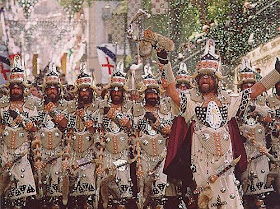 A la filà Vascos els tocava fer esquadra d'enmig en 1994 per ocupar el centre en la desfilada de les tropes de la creu. Els membres de l'esquadra portaven un magnífic trage obra de Jorge i José Domingo Sempere Vicedo, coneguts com els germans Sempere. Els tons clars brillaven amb llum pròpia en el radiant matí que oferia la climatologia als cristians de 1994, després d'haver sofrit més d'una jornada plujosa abans de la Trilogia. A més a més l'esquadra de la filà Vascos estrenava marxa cristiana per la seua esquadra d'enmig, una marxa de José Maria Valls Satorre titulada "L'enguerí" que com ja se sap, era la fàbrica on es va fundar la filà Vascos en 1909. Al trage destacava una túnica blanca i les tonalitats tostades i ocres que la feien espectacular. Al centre portaven un detall fet amb cordes enrotllades a mà de molt bon gust, d'on penjava una daga demostrant el treball artesanal per a confeccionar l'esquadra de negres. Culminava el disseny un casc amb unes banyes de búfal. L'impacte que van causar els esquadrers era immillorable. També és destacable que l'esquadra d'enmig de la filà Vascos en 1994 va ser la primera creació dels germans Sempere.