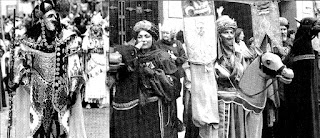 La filà Berberiscos va estar perseguida per l'amenaça de pluja. Després de tot un dia amb núvols que tapaven el sol en algunes ocasions, l'arribada de la tempesta s'anunciava a mesura que es feia de nit. Però l'alferecia berberisca es va salvar del perill i la pluja no va arribar fins que no va acabar l'Entrada Mora 1997. El boato de l'alférez moro va poder lluir-se totalment començant per l'esquadra de blancs amb la marxa mora "Als berebers". La percussió es feia l'ama dels carrers amb els diferents grups de dones que tocaven tambors. Primer les dones africanes de color taronja i roig amb pells d'animals exòtics, un escut i una llança amb la que feien moviments als sons rítmics de la percussió. Dones amb tambors de blanc, la carrossa dels timbalers blaus arrastrada per bous i darrere més dones percussionistes formant un conjunt instrumental sense precedents en les Festes d'Alcoi. Fins i tot xiquetes i adolescents van fer hores d'assaigs per a que el dia de l'Entrada pogueren portar les seues vestimentes blanques i roges tocant la percussió. Un harem amb una ballarina sensual donava pas a l'exotisme africà d'un grup de guerreres amb bombatxos rojos i túnica de pell de zebra a joc amb el maquillatge. Dissenys imaginatius i impactants creats per José Moiña. Unes mores portaven trages blancs arrastrant estores amb l'heràldica de la filà Berberiscos. Un ball de cavallets representava les batalles entre turcs i musulmans. Uns anaven de negre i roig i altres de taronja i blau formant exquisites figures amb les que el públic disfrutava. Una mescla de colors i de banderoles que també era una mescla de sons, aportats per les notes musicals de "El negro Sansón". Els metges del califa i un grup d'abanderades de roig i blau amb metalls daurats seguien al grup de Danses Sant Jordi. A continuació i al so de la marxa mora "Juanjo", un grup d'amazones amb trages rojos i turbants blancs i uns guerrers de negre i roig custodiaven la carrossa del muetzí predicant el Coràn, el llibre sagrat dels musulmans. El muetzí de negre amb els seus moviments exagerats posava punt i seguit en un abundant seguici de l'alférez moro 1997. Guerreres africanes de roig i blanc amb un casc original anaven armades amb llançes per defendre als cavallers. Però no els feia falta tanta seguretat ja que ells portaven escut i llança per si les tropes cristianes atacaven a l'alférez. Al compàs de la marxa mora "Sisco" els cavallers anaven sobre palanquins arrastrats per esclaus. Segurament tindrien enveja de la magnificència dels vestits dels seus senyors amb fines teles blanques, blaves i roges i sobretot metalls daurats. La carrossa de la favorita i les dames representava una almunia, una casa àrab d'estil agrícola envoltada de palmeres i horts. La dona de l'alférez, vestida de blanc, saludava al públic acompanyada de les seues dames amb ventalls i trages de granate i blanc. Tant el trage de la favorita com el de les seues dames estaven plens de detalls però José Moiña va voler que la favorita ressaltara més que ninguna afegint-li al trage xicotets adorns d'or que realçaven un trage meravellós. Els acompanyava la coneguda marxa mora "Xavier el coixo". Una tribu africana amb teles blaves, pells d'animal i casc amb plomes s'encarregaven de protegir la favorita. Un nou espectacle s'incloïa al boato berberisco i amb ell l'alférez moro. Primer un grup de indígenes de negre i roig que representaven el foc i darrere la carrossa de l'alférez José Tomás Miró envoltat de guerreres ballarines que amb els seus moviments imitaven les flames del foc purificador. Com es lògic les ballarines de Virginia Bolufer anaven de roig amb màscares misterioses i sorprenents. Un gegant africà alçant els braços tancava la carrossa i curiosament portava un vestit com el de les ballarines. Això va provocar que en la carrossa de l'alférez regnara el roig i el foc. Però José Tomás Miró portava un trage blau i blanc que acabava en una túnica granate pràcticament tapada pels metalls daurats. La corassa pareixia haver estat pensada per a que brillara intensament amb les llums de l'enramada. Un trage espectacular digne d'un gran càrrec, una obra maestra de José Moiña. Rafael Mullor va compondre l'obra "Déu del foc" per a l'alférez moro en un ambient místic. Els quatre escuders a cavall vestits de roig, verd i groc amb turbant negre i la carrossa dels xiquets obria el pas a un grup de ballarins amb cos d'home i cap de cavall que feien una dansa ritual al voltant d'una llarga serp. L'esquadra de negres va trencar amb tot lo vist en les Entrades alcoyanes. Era una esquadra atrevida, d'inspiració massai i que va dur molta polèmica amb comentaris de tot tipus. Però ningú podia negar la seua originalitat. Cares totalment negres com si africans foren els membres. Peluques blanques al cap i absència de plomes. Una apretada túnica roja i sobre ella una manta blanca amb estampats de colors i formes diferents que cada esquadrer lluïa a la seua manera. D'un costat colgaven penjolls propis d'una tribu massai. Tampoc faltaven al trage de Vicente Torregrosa les pells d'animals de la sabana africana i a la túnica es podia observar una pell de guepard que també portaven a l'escut de l'esquena. L'esquadra va preferir no portar capa per donar-li més autenticitat a una esquadra tribal. Utilitzaren un ullal d'elefant com a arma en una esquadra totalment contrària al classicisme alcoyà, molt propens a omplir els dissenys de metalls. Al contrari que el disseny, la marxa mora era purament clàssica: "Any d'alferis". Es pot dir que l'alferecia dels Berberiscos en 1997 va marcar un abans i un després en les Festes de Moros i Cristians d'Alcoi.