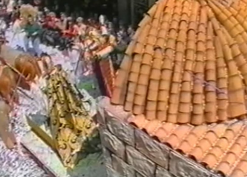 La filà Maseros era esperada pel públic ja que feien l'alferecia cristiana en 1998. Però l'estètica dominant no anava a ser cristiana sinó llauradora. S'iniciava amb l'escut de la ciutat de València i un grup de dones de roig, blau i blanc amb molt de metall que portaven unes corbelles amb les que saludaven al públic. Darrere desfilava un grup d'homes guerrers amb túnica blanca i la senyera damunt formada per diferents teles. Alçaven les seues llançes quan les panderetes sonaven amb força. Els senzill trage dels percussionistes de blanc i marró obria el pas a les llauradores de blanc i verd. Les llauradores portaven als cabassos hortalisses del camp on treballaven. Els dissenys estaven fets per Jordi Sellés i incloïen els tradicionals barrets de palla. També era tradicional el sol de les xirimites que interpretaven "Cotes". Un carro de romeria engalanat amb verdures penjant van traure els Maseros al seu boato i un peveter on es cremava timonet. Les masoveres que l'envoltaven podien olorar la relaxant aroma d'aquesta herba medicinal tan pròpia de la Serra Mariola. Envoltades del fum, les masoveres de roig, blanc i negre repartien herbetes dels seus cabassos entre el públic. Es tapaven el sol de migdia amb barrets de palla. Un boato molt compacte que continuava amb unes pastores de blanc d'inspiració bucòlica. Les capes eren de color marró. Un grup de segadors obrien pas al ballet dels espantapájaros. Amb un trage fet de palla i teles de sacs, amb coloristes pantalons, un grup de espantapalls espantaven als pardals amb els seus alegres moviments. Divertit ballet de Carmina Nadal que va ser molt recordat per la seua originalitat. El maquillatge dels espantaocells recordaven a les carabasses per ser de color taronja. L'alférez cristià 1998 es presentava sobre una carrossa arrastrada per bous junt a la seua família. Alfonso Torres Cardador vestia un trage meravellós de José Moiña on predominava el color blanc dels Maseros. El casc alat incloïa unes espigues i l'escut de la ciutat en or. El cinto era roig i tota la tela blanca estava brodada amb fil d'or. Els metalls també eren daurats i la capa blava i roja. Com a arma portava un gallato roig i no va faltar l'identificatiu saragüell. El seu calçat va ser confeccionat per ell mateix ja que és la seua professió. Per això l'obra musical de xirimites que l'acompanyava es va titular "El sabater". La favorita portava un vestit de valenciana rica en color blanc damunt d'una falda verda. La carrossa representava l'absis del Temple de Sant Jordi d'Alcoi. Una pintura mural de Fernando Cabrera que contava com Sant Jordi va aparèixer per salvar als alcoyans de l'atac d'Al-Azraq en 1276. Un grup de genets i les llauradores daurades obrien el pas a la carrossa de les dames i els cavallers: Davant les dames amb trages blancs de llauradora rica i darrere els cavallers de blanc i negre amb algun toc de roig i sense casc. L'esquadra de negres estava dissenyada per José Moiña que va vestir als esquadrers de blanc amb metalls daurats, al igual que la resta del boato. El casc representava un rat penat i per darrere la capa de macramé portava molts complements penjant, entre els que destacava un escut. L'arma era una corbella gegant. També s'utilitzaren pells per donar-li més color a l'esquadra que estava acompanyada per la mítica "Pas als maseros". Un grup de dones de blanc i blau amb capes negres portaven l'últim trage que Jordi Sellés va fer per al boato de la filà Maseros en l'any de càrrec. Un carro com els utilitzats en "Les pastoretes" dels Reis Mags era seguit per les llauradores amb els trages típics del segle XIX, època en la que està inspirada aquesta filà, sent una de les més antigues. Ahí queda demostrada l'antiguitat de les Festes alcoyanes. L'esquadra oficial dels Maseros amb la peça musical "València" tancava la desfilada dels defensors de la creu mentre el cel anava encapotant-se poc a poc.