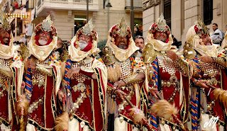 La pluja intermitent no va deslluir l'esquadra d'enmig de la filà Marrakesch, ni molt menys l'Entrada Mora. Juan Climent va reinterpretar el trage oficial de la filà Marrakesch i el resultat va ser una esquadra de negres molt distingida. El caràcter marroquí dels esquadrers es devia al maquillatge marró i a un ric turbant amb metalls daurats i teles en tons crema i granate. Els colors de la filà com el granate i el blanc conformaven una elegant túnica que acabava en color negre. Una de les mànegues estava coberta per un escut daurat i pells d'animal. Entre els nombrosos adorns de metall destacaven les xapetes daurades amb les que es cobrien el pit. Les ratlles de la faixa tricolor es podien apreciar per davant i sobretot en la capa amb els colors blau, groc i roig. Símbols de l'Islam com la mitja lluna i l'estrela de cinc puntes es repetien en varies parts de l'esquadra d'enmig mora 2016. L'arma feia que l'esquadra de negres fora guerrera i senyorial al mateix temps i per a remarcar la procedència dels esquadrers la marxa mora elegida va ser "Soc Marrakesch". En la Plaça Espanya es va fer realitat el somni de moltes dones: La primera esquadra de blancs composada per dones en una Entrada Mora. Van ser les mateixes festeres pioneres de la filà Marrakesch que en 2015 havien arrancat la Diana. Si pel matí la filà Vascos treia la primera esquadra de dones a l'Entrada Cristiana, per la vesprada eren la filà Marrakesch els que van desfilar amb una esquadra femenina al ritme de la marxa mora "Xavier el coixo". Aquest moment històric no va eclipsar l'esquadra d'enmig mora que tenia la mateixa filà. La penúltima filà de l'Entrada Mora 2016 estava de celebració. La filà Verds complia 150 anys desde la seua refundació en 1866 i van fer gala de l'aniversari amb una esquadra commemorativa que recordava la senzillesa dels dissenys turcs del segle XIX. De fet l'esquadra de la filà Verds portava el trage primitiu, que tenia un turbant amb una ploma blanca acabada en color verd. El disseny era un poc obsolet ja que les filaes actuals solen portar capa i no manta blanca. Tant els bombatxos com el xaleco eren d'un verd fosc, mentre que la faixa era groga i la camisa roja, amb unes mànegues plenes de brodats. La filà Verds, coneguda pel seu classicisme, va triar una antiga marxa mora de Camilo Pérez Monllor per a la desfilada: "Moros y cristianos" que va fer més emotiva la celebració degut a la gran bellesa de la peça musical.