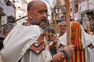 La pluja, que havia banyat els carrers durant la Diana, va deixar pas a un sol que va abraçar a la filà Aragonesos en el seu any de capitania cristiana. La doble esquadra de blancs al compàs de la marxa cristiana "Aragonesos 99" obria un homenatge complet a les Festes de Moros i Cristians. El primer element fester que es va recrear va ser l'Enramada que complia 40 anys. El ballet de Virginia Bolufer es movia imitant les almenes de les llums artificials, amb efectes aconseguits per unes tires simètriques que penjaven dels braços. El trage verd tenia estampat al pit els escuts de les 28 filaes alcoyanes i als cabells de les ballarines quedaven enredades les serpentines. El colorit es mesclava amb la sobrietat en el primer ballet de la jornada amb la peça musical "Llaor". El boato de Juan Climent anava a representar les 14 filaes cristianes d'Alcoi i van començar amb un grup de llauradors d'Andalucia. El trage en blanc, roig i negre contava amb el saragüell de la filà Maseros i el mocador i les borles contrabandistes. El característic trage blanc de la filà Vascos es mesclava amb una falda que recordava el color de la filà Mozàrabes. Un palanquí infantil antecedia als joves llançers amb una túnica negra i la bandera aragonesa i el lleó com a símbol de la filà de Batoi. En un any de tanta importància femenina, les dames van ser de les primeres en arrancar sobre la carrossa d'un pati d'armes. Les flors del jardí, la reixa i les pedres del mur protegien a les dames amb un trage de color granate. Juan Climent va afegir solemnitat a les dames gràcies a la falda negra, la caputxa, els cueros marrons i uns preciosos brodats de fil d'or. La banda de música interpretant la marxa cristiana "Signum" donava pas al nombrós grup de Cides d'Astúries. Se sabia a quines filaes alcoyanes representaven gràcies a la túnica roja i la falda ocre amb la característica sanefa de la filà Asturianos. La percussió dels Almogàvars de Navarra es basava en xocar espases amb escuts, tal i com feien els mercenaris amb el lema "Desperta ferro". Les cadenes de la filà Navarros i els colors roig i blau s'apreciaven clarament en el grup de la popular Llaganya. El boato del capità cristià va ser la festa dins de Nostra Festa, un cant col·lectiu a la idiosincràsia alcoyana. Un peveter esparcia fum per a simular l'ambient de l'Alardo. El ballet d'Inma Cortés s'anomenava trabucs i pólvora, els components essencials de l'últim dia de la Trilogia Festera Alcoyana. Els flecos de les ballarines i el color gris recordaven a l'ambient dur de la batalla, al igual que la peça musical que s'estrenava: "El dia els Trons" d'Azael Tormo. Les ballarines disparaven trabucs i portaven petos negres, caputxa de cotamalla i una xicoteta corona platejada. El següent grup mixte representava als Gusmans d'Aragó amb la clàssica túnica gris i el negre de la filà Aragonesos. Juan Climent va dissenyar un trage verd amb cinturó de cuero marró i xapetes metàl·liques en honor de les filaes Muntanyesos i Alcodianos. Aquest grup amb destrals resguardava la carrossa del castell on anaven els cavallers. En honor als ambaixadors de la història, els cavallers portaven el text de les Ambaixades en una tira del trage de Juan Climent. Però destacaven per l'estètica bèl·lica de la falda granate, el casc platejat acabat en puntes i la quatribarrada al cinturó de cuero marró. L'altre grup de cavallers no tenia la capa negra, sinó la túnica en contraposició i a més a més tenien una corassa de plata i uns brodats medievals per totes les parts. La marxa cristiana "Llebeig" de Saül Gómez va sonar apoteòsica per als poderosos cavallers amb llançes. Unes xiquetes amb caputxes i trages monocroms en roig i groc formaven la Senyera de la Corona d'Aragó. Anaven movent mocadors en varies línies bicolors com a escolta infantil de les rodelles. La favorita i les seues 2 filles desfilaven emocionades amb uns trages idèntics fets per Juan Climent. En totes les parts del trage hi havia brodats daurats: A la falda blanca, a la túnica negra dels costats i al corsé granate ajustat per un cinturó metàl·lic amb el lleó rampant. La llança era el contrapunt guerrer, mentre que la diadema convertia en princeses a les 3 xiques més importants de la vida de Saoret. La marxa cristiana "Aragonesos més que mai" anava en conjunció amb la carrossa amb unes arrels i flors enredant-se a l'escut gegant de la filà Aragonesos. La icònica quatribarrada no sols ocupava la carrossa de la favorita i les rodelles, sinó també el cel alcoyà. Desde el Campanar es van disparar fums de colors que formaven les 5 barres grogues i les 4 barres grogues que identificaven als catalans i valencians al segle XIII. El grup femení de les Tomasines de les Croades combinava els colors blaus de les ratlles de la filà amb el blau i el blanc de la capa i la túnica de la filà Cruzados d'Alcoi. Altre grup femení en honor a les filaes cristianes, però faltava la referència la bàndol de la mitja lluna. El ballet d'Ana Botella va fer una reinterpretació dels trages de les 14 filaes mores. El cromatisme dels bombatxos turcs, les manegues amples i els adorns daurats formaven part dels trages de les ballarines, dos per cada filà d'Alcoi. Un sensual ballet amb el melic a l'aire a l'estil oriental i amb una coral i la banda de música tocant "Jamalajam". Els savis de la filà custodiaven el gran llibre dels records on s'escriurien les experiències dels participants en la capitania cristiana 2025. Els joves consellers vestien en tons ocres i decorats amb cuero marró, compartint carrossa amb els veterans de la filà Aragonesos. La guàrdia amb caputxa representava a la Corona d'Aragó amb la túnica blanca, el lleó i les barres de la Senyera. Era el torn de Salvador Albero Gonzàlez, el capità cristià que va unificar a totes les filaes d'Alcoi perquè havia sigut Sargento Cristià 2009-2012. Portava un trage de Juan Climent ple de detalls i brod